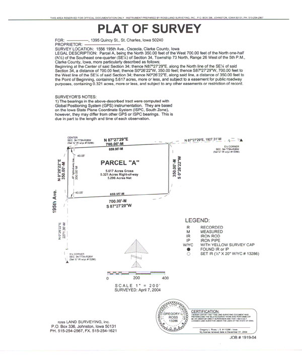 ©2008 Ross Land Surveying Inc